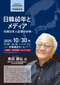 • 「日韓60年とメディア―在韓日本人記者の妙味―」  黒田勝弘氏が10月30日(木)特別講演会
